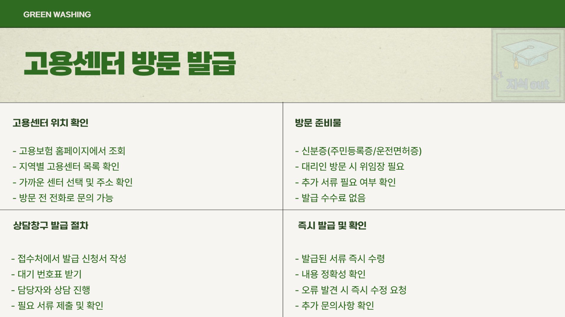 온라인 발급이 어렵다면, 고용센터 방문을 통해 서류를 직접 받을 수도 있어요.