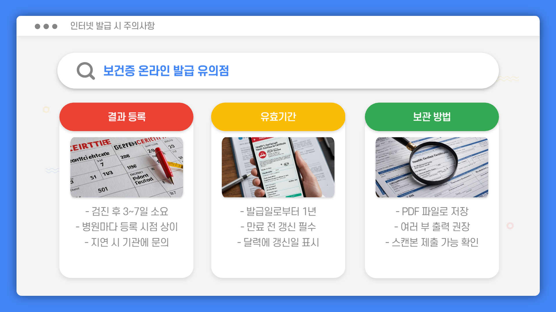 ✅ TIP: 혹시 보건증을 분실하셨다면, 걱정하지 마세요! 인터넷 발급을 통해 쉽게 재발급할 수 있습니다.
