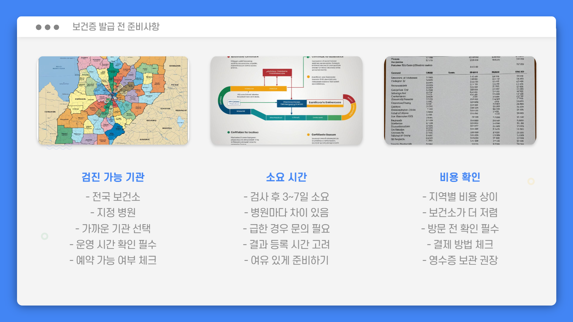 보건증을 발급받으려면 보건소나 지정 병원에서 검진을 받아야 합니다. 저는 근처 보건소를 방문해서 검진을 받았는데, 비용도 저렴하고 빠르게 진행할 수 있어서 좋았습니다.