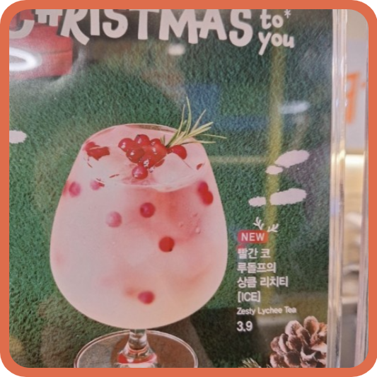 3. 오늘 뭐 마시지 추천메뉴 빨간 코 루돌프의 상큼 리치티 🍒 – 상큼하게 기분 전환!