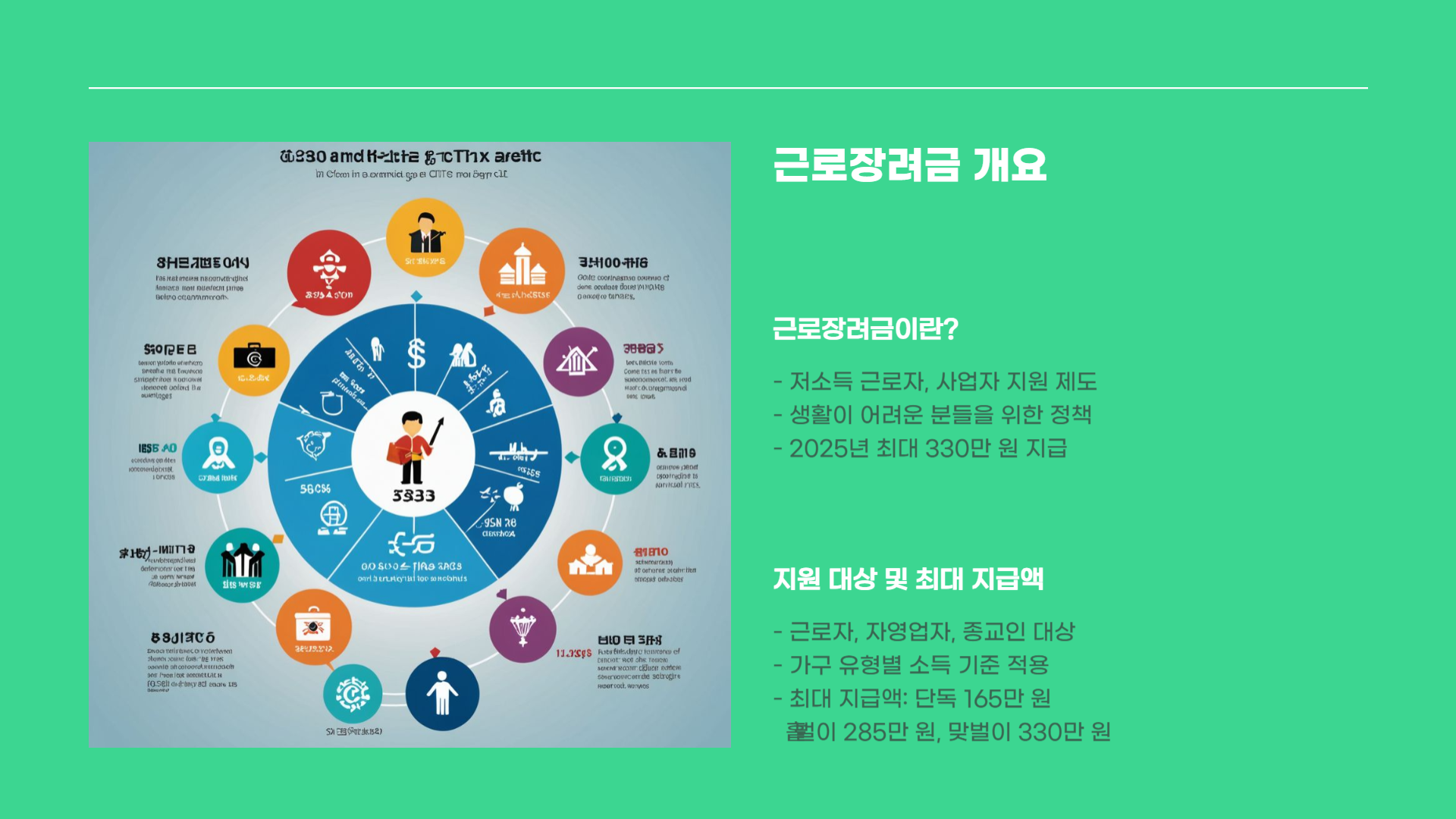 계속 오르는 물가와 생활비 부담 속에서 정부에서 제공하는 근로장려금은 저소득 근로자와 사업자를 위한 중요한 지원 제도입니다. 현재 근로를 하고 있지만 소득이 낮아 생활이 어려운 분들을 위해 마련된 정책이며, 2025년에는 최대 330만 원까지 지급됩니다.