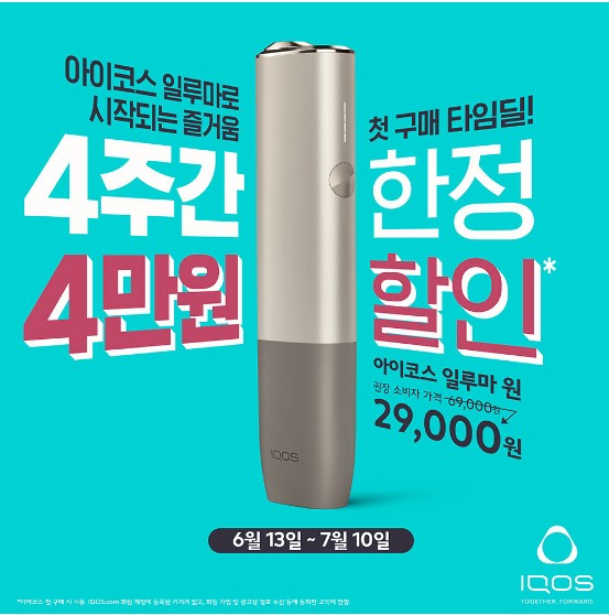 그러나 이번 편의점과 아이코스 직영매장에서 6월특가 행사로 아이코스를 처음 구매하시는 신규 고객이라면 아이코스 일루마 전 기종을 무려 4만원이나 할인 받을 수 있는 기회가 생겼으니 이번 기회를 놓치지 마시길 바랍니다.